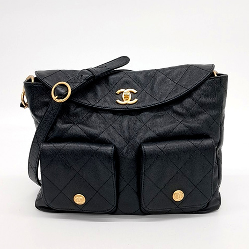 CHAN*L 25P 투포켓 호보 백 캐비어