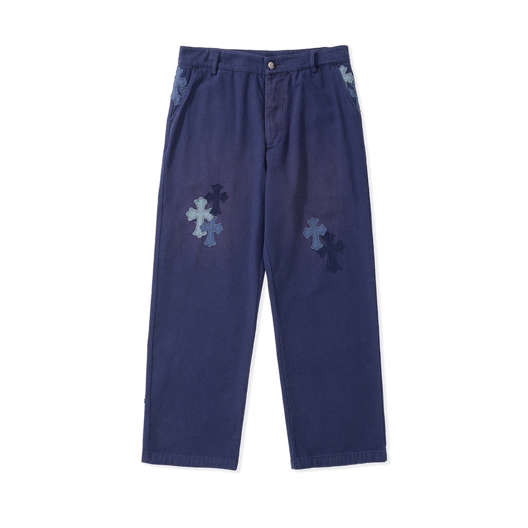 크롬*츠 레더 크로스 패치 워크 팬츠