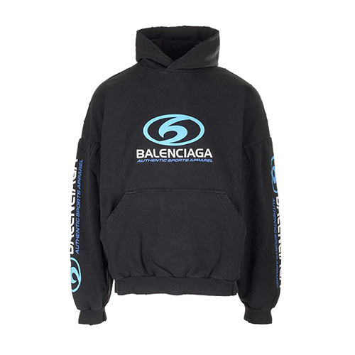 - 발렌시*가 로고 프린트 후드 티셔츠 -