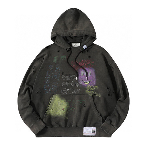 미하라 야스히로 프린트 블리쉬 후드 티셔츠