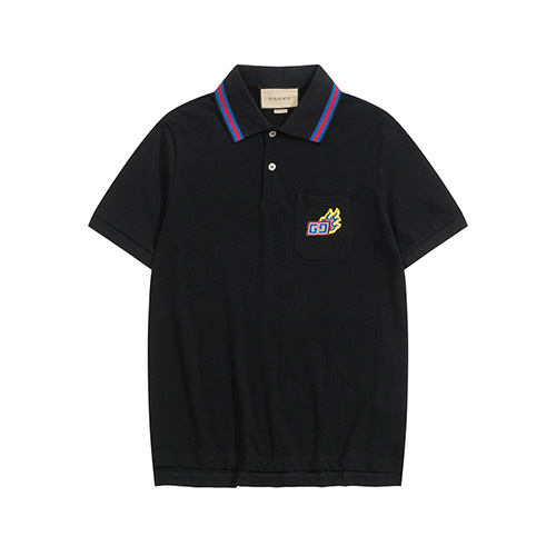 GUC*I 웹 GG 로고 패치 폴로 티셔츠