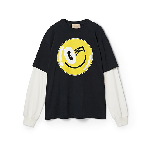 - GUC*I 로고 프린트 레이어드 티셔츠 -