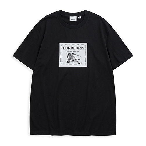 - 버*리 로고 프린트 라운드 티셔츠 -