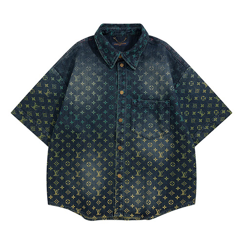 루이*통 레인보우 모노그램 쇼트 슬리브드 데님 셔츠