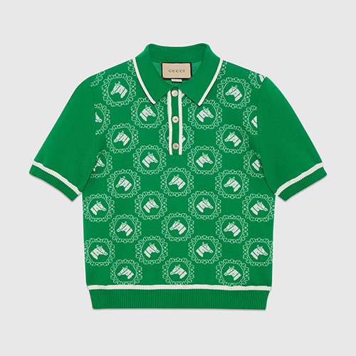- GUC*I 승마 코튼 울 자카드 폴로 -