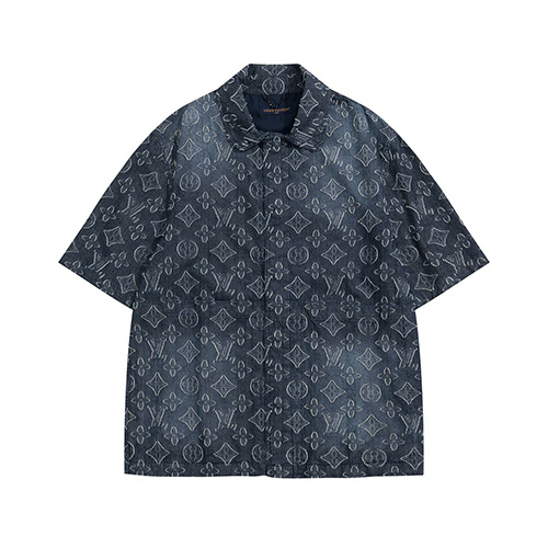 - 루이*통 모노그램 쇼트 슬리브드 샴브레이 셔츠 -