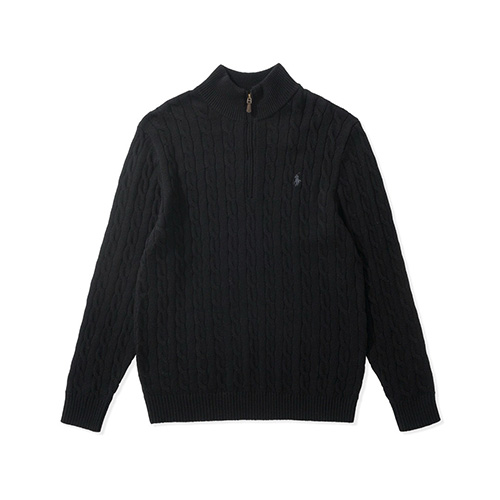 POLO 케이블 니트 쿼터 반집업